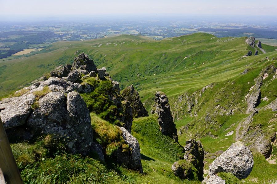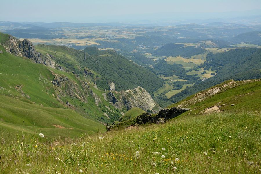 Un parcours de crêtes aux paysages grandioses qui mène au sommet du Sancy (1 885 m) dans un relief de vallons escarpés et de couloirs encaissés et sauvages (Val d’Enfer). De nombreuses cascades dévalent les pentes pour donner naissance à la Dordogne.