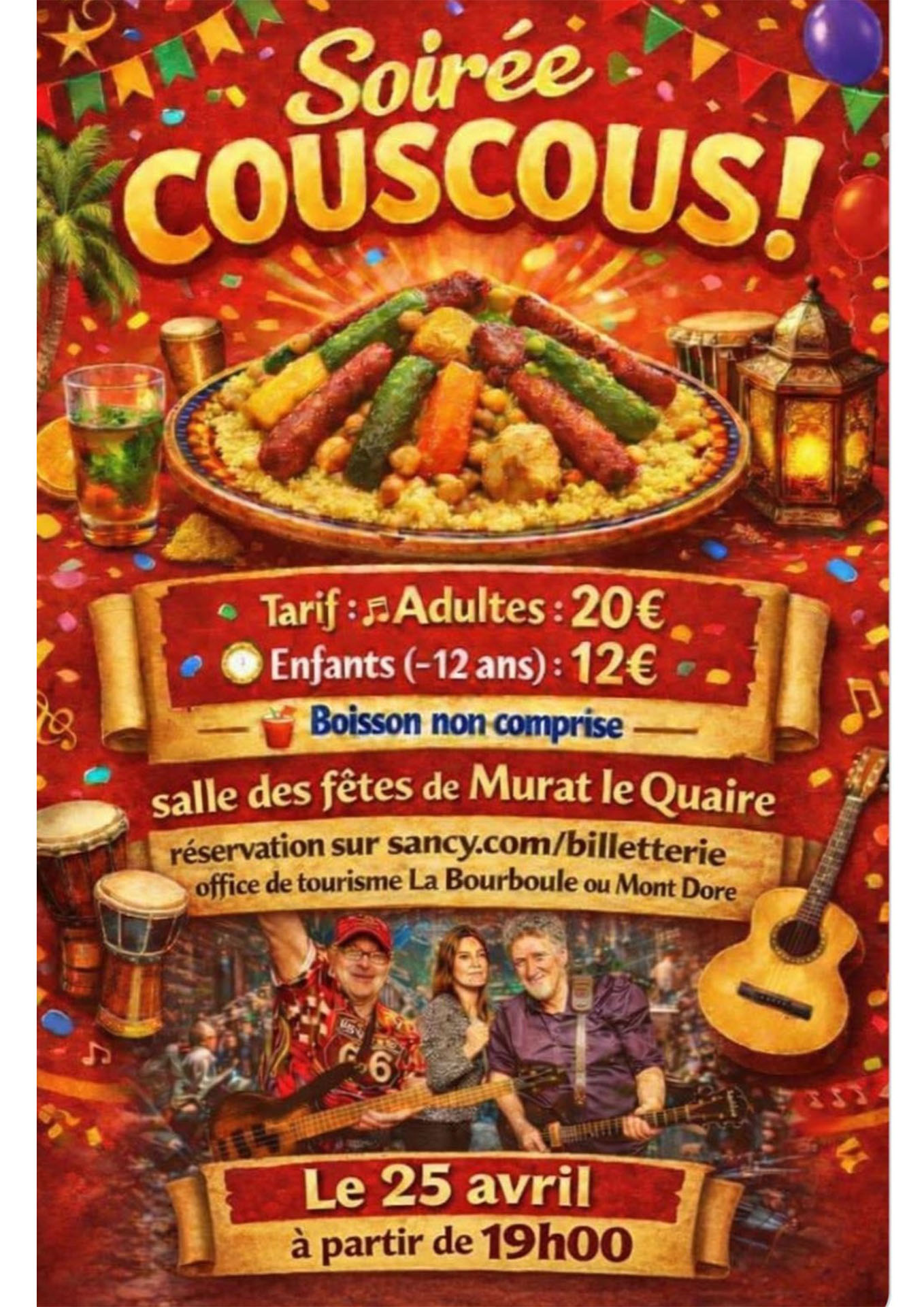 Soirée couscous Salle des fêtes63150 Murat-le-Quaire